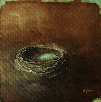 This is the same little wren’s nest that I used in the previous nest painting. Isn’t it amazing how color and lighting change the mood? The possibilities (one of my favorite words) are endless. Sorry about the reflection in the photo…should have taken a better one, but….I’d rather start another painting.