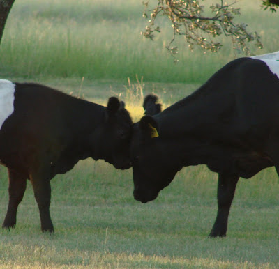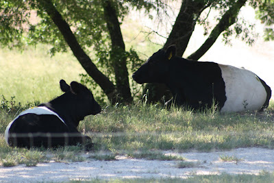 -My husband called me a couple of weeks ago to tell me that our cow-man friend, Garland, knew of some cows for sale just like I’ve always wanted; Oreo cows. They were at a sale barn about an hour from here and would be auctioned off the next day, possibly headed for the meat packing plant! I wish I could have bought them all, but could only bring these two home, a mother and baby which I have named Cookie and Kitten. Aren’t they pretty? As with all our animals, they are now spoiled rotten. I can hardly step out the door without them right by my side mooing for cow cubes. They sleep just outside the front yard fence like great big dogs. They are supposed to help with the mowing though I can’t see much progress.