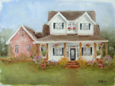 I painted my house the other day. No, I didn’t paint the house – just a picture of it. I’ve said before that I love houses and had hopes of becoming an architect when I was younger. My 5th grade teacher, Mrs. Allsup, used to stay after school to look at the house plans with me that I had cut out of the Sunday paper. Wasn’t that nice of her? I’ll never forget it. Anyway, it became apparent that architecture might not be my thing (math: bad) so I’m happy just painting pictures of houses. No math.