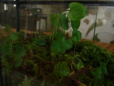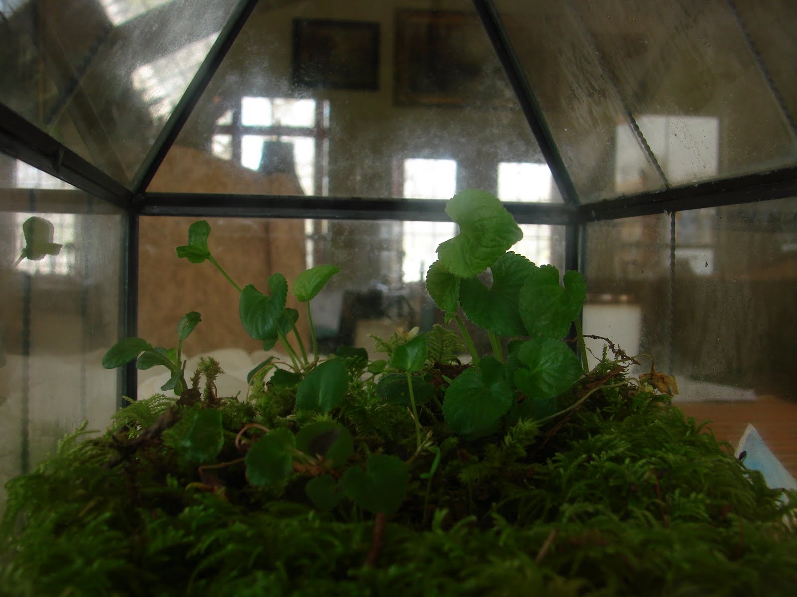 -My blog friend, Flower, knows how much I envy her her woods and moss; something they have a lot of in Oregon and we have none of in West Texas. So she sent me a box full of it! As I opened it, the sweet, moist smell of earth and forest filled the room and I was transported. I’ve made a terrarium, something I used to do as a long time ago, and I hope it will last in this moist, humid environment. The white violets and johnny-jump-ups were blooming when it first arrived. They are thriving, so maybe they will bloom again. I doesn’t matter, though. The joy of having this little world on my table, lifting the lid for a whiff of one of my favorite smells is plenty good enough for me. Thank you, Flower, and thank you God, for the beauty of your earth down to the tiniest detail, even the ground beneath our feet.
