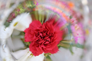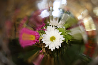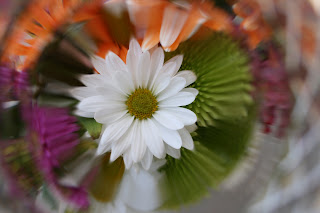 I was paying bills (yuck) and stopped for a drink of water. As I drank the last drop, I noticed how pretty my Mother’s Day flowers looked through the bottom of the glass. Naturally, I ran for my camera and took a bunch of pictures. I’m easily sidetracked. There are just so many more fun things to do than pay bills! Right?